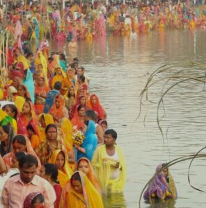 рдЖрдЬ рддрдбрд╝рдХреЗ рд╣реА рд╢реНрд░рджреНрдзрд╛рд▓реБ рдорд╣рд┐рд▓рд╛рдПрдВ рдФрд░ рдкреБрд░реБрд╖ рдЕрдкрдиреЗ рдШрд░реЛрдВ рд╕реЗ рдШрд╛рдЯреЛрдВ рдХреА рдУрд░ рд░рд╡рд╛рдирд╛ рд╣реБрдПред рдХрдИ рд╕реНрдерд╛рдиреЛрдВ рдкрд░ рднрдХреНрдд рд░рд╛рддрднрд░ рдЬрд╛рдЧрд░рдг рдХрд░рддреЗ рд╣реБрдП рднрдЬрди-рдХреАрд░реНрддрди рдореЗрдВ рд▓реАрди рд░рд╣реЗред рдЬреИрд╕реЗ рд╣реА рдкреВрд░рдм рдХреА рджрд┐рд╢рд╛ рдореЗрдВ рд╕реВрд░реНрдп рдХреА рдкрд╣рд▓реА рдХрд┐рд░рдг рдлреВрдЯреА, рдШрд╛рдЯреЛрдВ рдкрд░ рдЙрдкрд╕реНрдерд┐рдд рд╡реНрд░рддреА рдорд╣рд┐рд▓рд╛рдУрдВ рдиреЗ тАШрдЙрдЧрддреЗ рд╕реВрд░реНрдп рджреЗрд╡тАЩ рдХреЛ рдЕрд░реНрдШреНрдп рдЕрд░реНрдкрд┐рдд рдХрд┐рдпрд╛ред